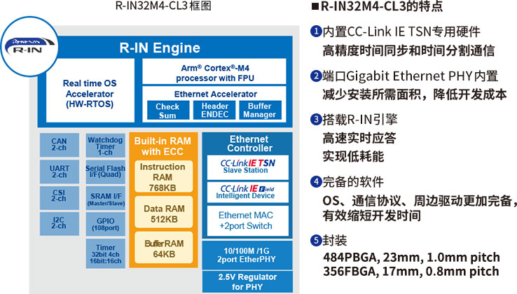PHY、CPU、大容量內存的方式,可用單芯片實現CC-Link IE TSN。